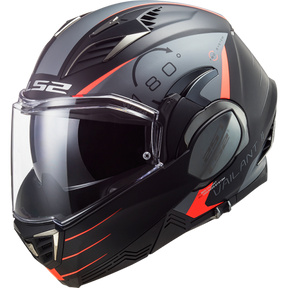 The LS2 Valiant II 180-degree flip-front motorcycle helmet. Building upon the success of the original Valiant, LS2 has again pushed the envelope of technological development. A newly designed chin bar mechanism is smaller and slimmer than the original, making for a more aerodynamic shell. The Valiant II retains all the features and functions of the original Valiant, but with a new more modern look.